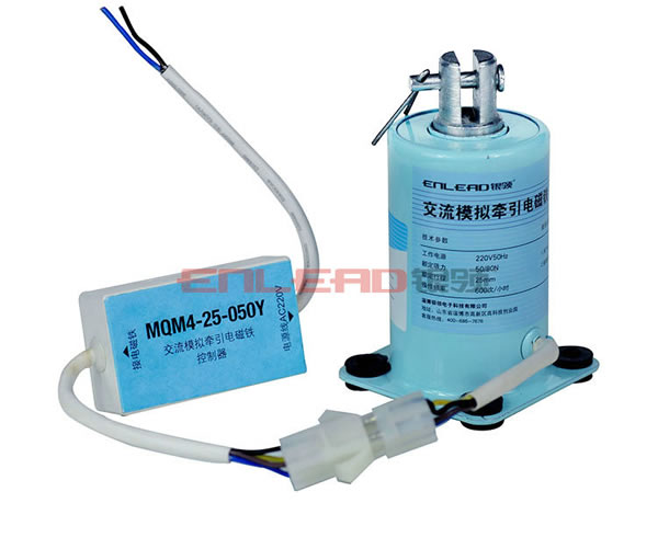 電磁鐵控制器裝在電磁鐵外部,電磁鐵的工作過程全部通過控制器來實(shí)現(xiàn)??刂破鞯妮斎刖€與用戶控制設(shè)備相連,輸出線通過四芯專用插頭與電磁鐵相連。