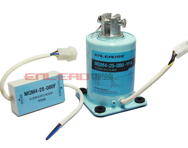 電磁鐵控制器裝在電磁鐵外部,電磁鐵的工作過程全部通過控制器來實(shí)現(xiàn)??刂破鞯妮斎刖€與用戶控制設(shè)備相連,輸出線通過四芯專用插頭與電磁鐵相連。
